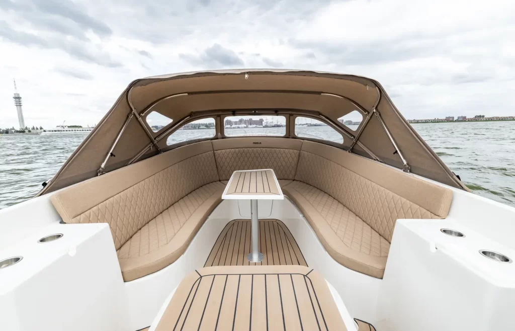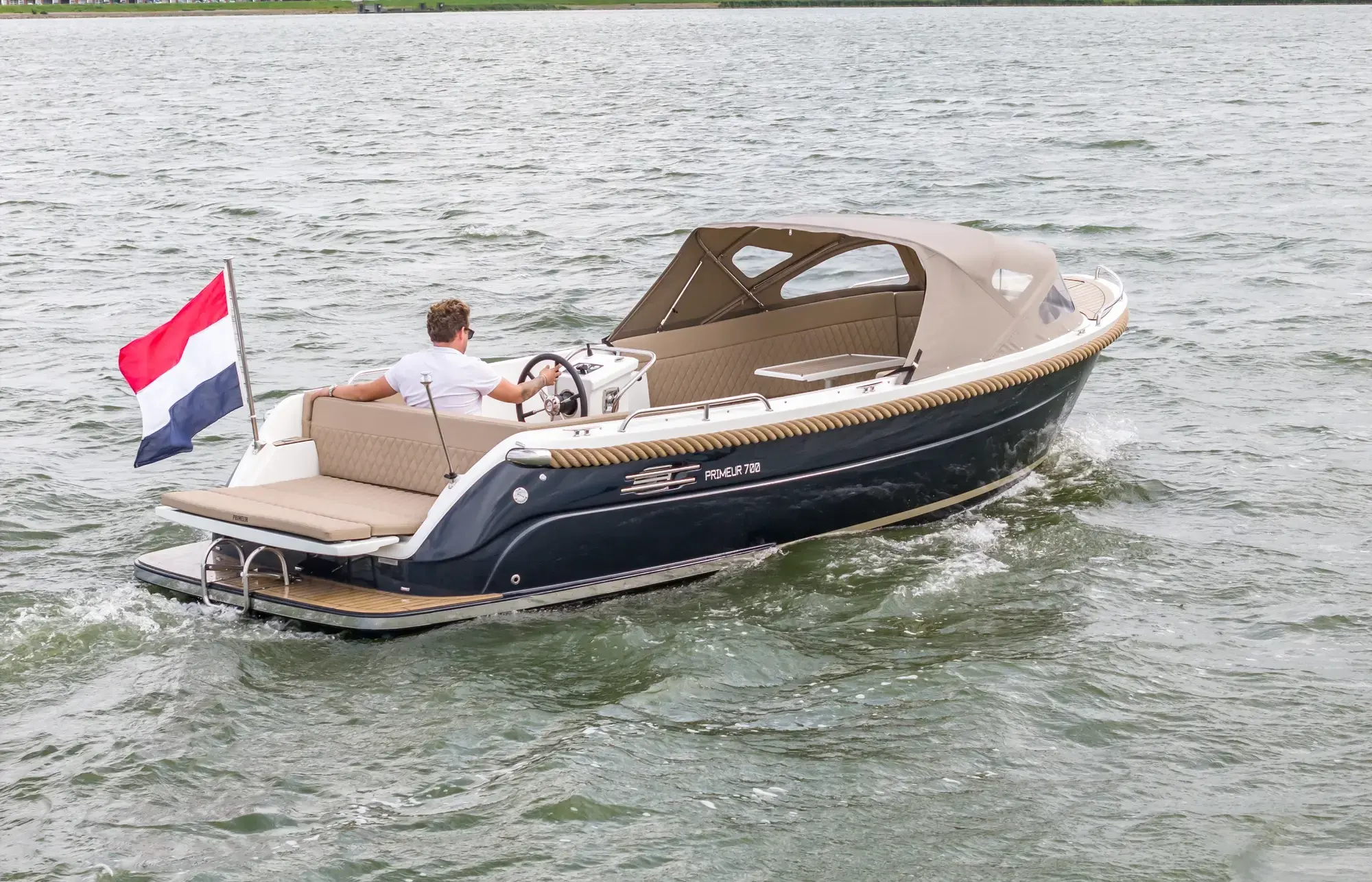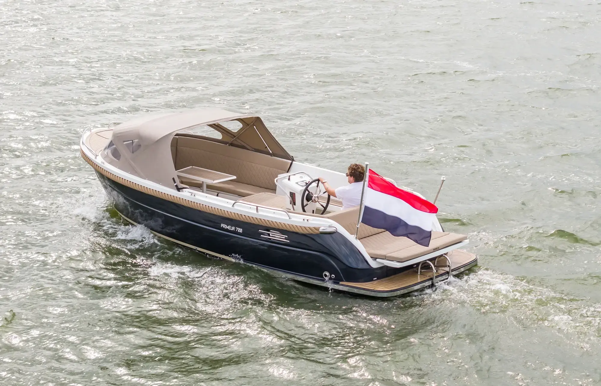 Die Primeur 700 ist in drei Varianten erhältlich: als Sloep, Lounge oder Tender. Alle Boote haben die gleichen Abmessungen – der Unterschied liegt im Heck. Beim Tender verläuft das Heck sportlich schräg, die Lounge hat ein offenes Heck und die Sloep verfügt über ein gerades, klassisches Design. Durch das gerade Heck bietet die Sloep etwas mehr Sitzplätze. Dank ihrer Größe und des Rumpfdesigns ist die Primeur 700 Sloep außergewöhnlich stabil und spurtreu. Selbst mit mehreren Passagieren an Bord bleibt das Boot ruhig und ausgeglichen. Alle drei Varianten – Tender, Lounge und Sloep – sind bereits in der Standardausstattung sehr umfangreich ausgestattet und in modernen Farbvarianten gegen einen geringen Aufpreis erhältlich. Ein Primeur ist daher immer eine kluge Entscheidung.