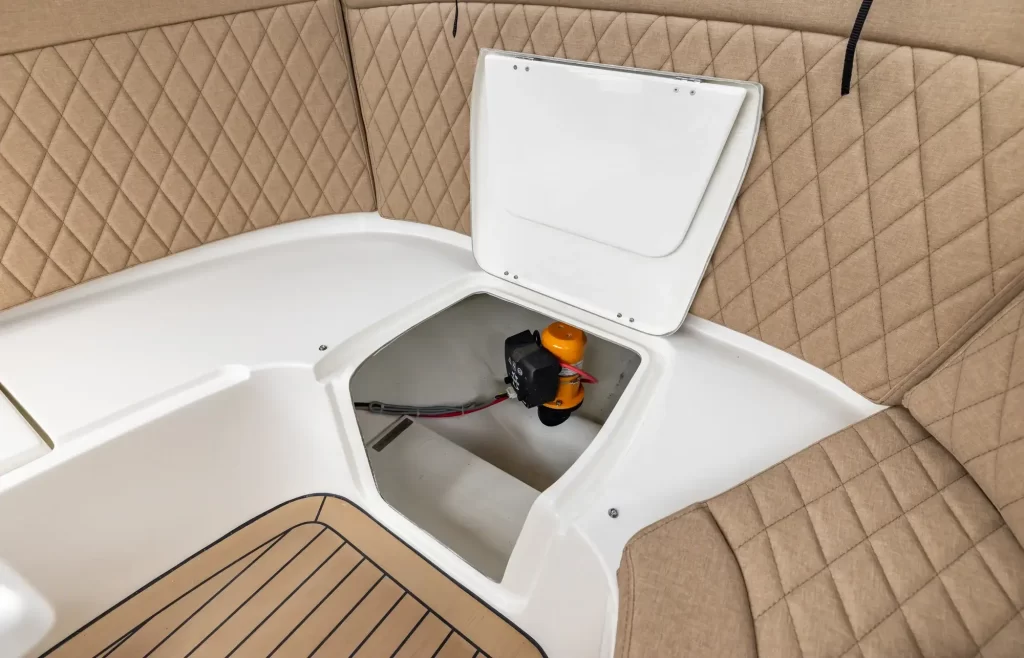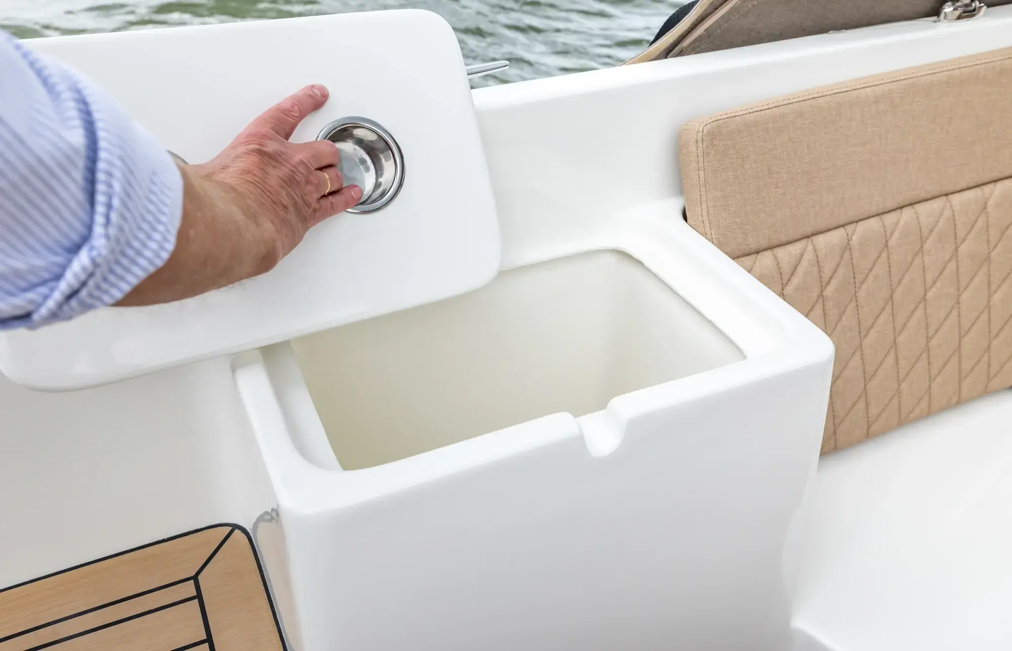 • HPL Teakline auf dem Motorraumdeckel